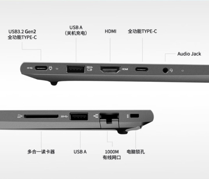 机身左侧的USB-A接口支持关机充电,所有的USB-C接口均为全功能接口。堪称完备的接口类型,使得用户无论是在会议室连接投影仪,还是在外接存储设备和键鼠,都无需依赖繁琐的转接器,极大地提升了工作效率和便利性。
