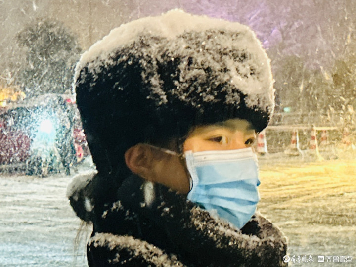 12日,济南迎来今冬第一场大雪。因降雪量大,道路较为湿滑。夜幕时分,黑虎泉北路与泉城路路口,女交警杨咏琦在风雪中来回穿梭,指挥来往车辆有序通行。 齐鲁晚报·齐鲁壹点记者 陈文进